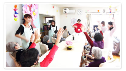 体操・脳トレをはじめ、笑顔が自然とあふれるレクリエーション、クリスマス会などの季節イベントもたくさんご用意しております。